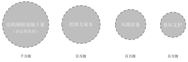 結(jié)論2:造價(jià)組成,相比于傳統(tǒng)車庫,專利車庫大大降低了鋼筋混凝土、挖填方、風(fēng)煙設(shè)備等成本,省投資。